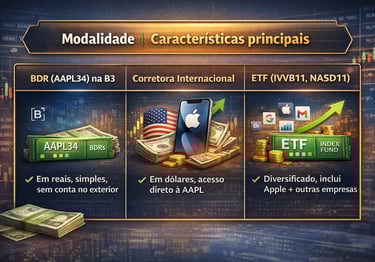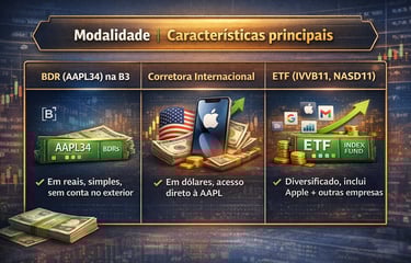 Comparativo das formas de investir em Apple para brasileiros: